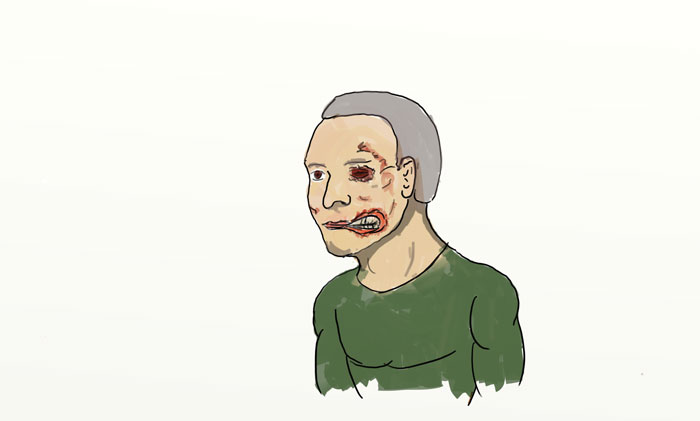 No painting today. Had neither the will nor the time to work on that. So instead a hideously difigured man.