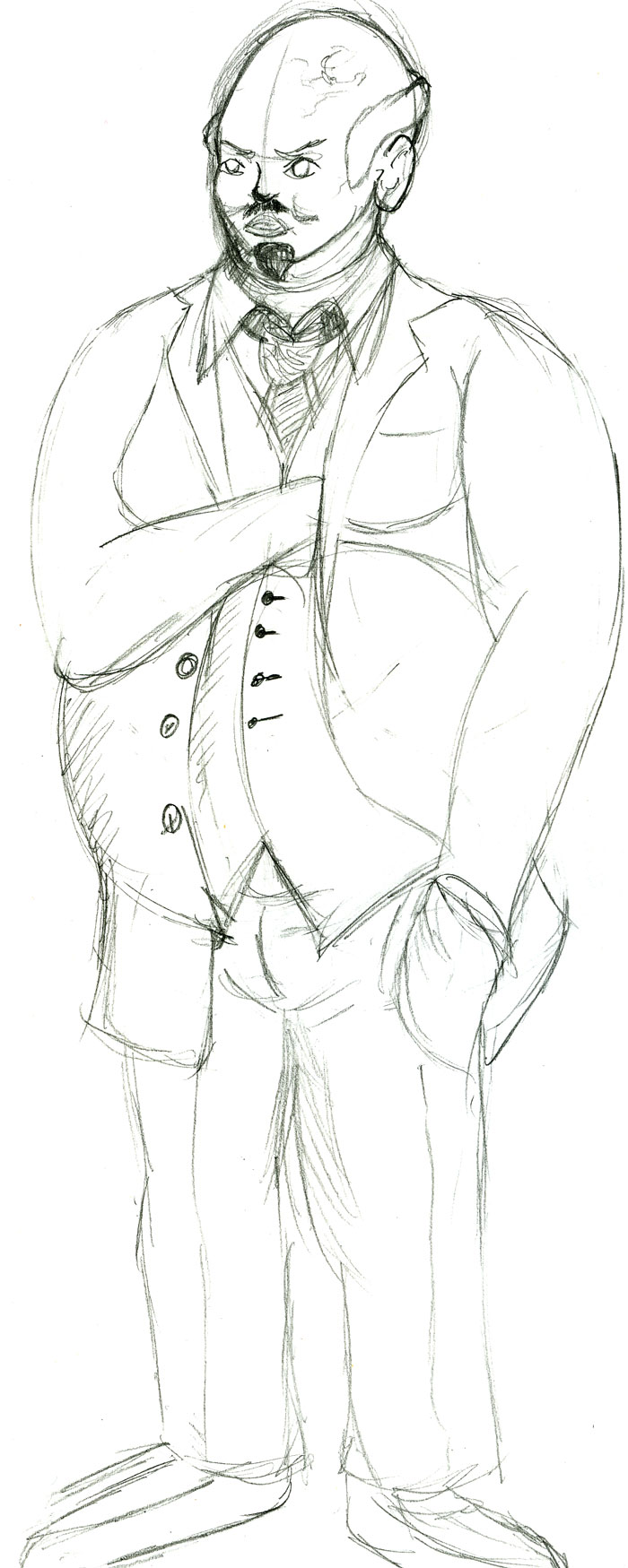 Fat boss type dude in a pinstripe suit. He's probably evil...