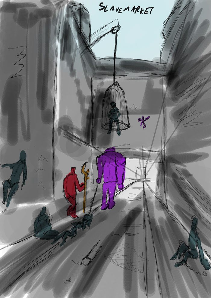 Was going to start on a painting of yesterdays sketch but the painting wasn't within me today, so instead another concept for a future page.
