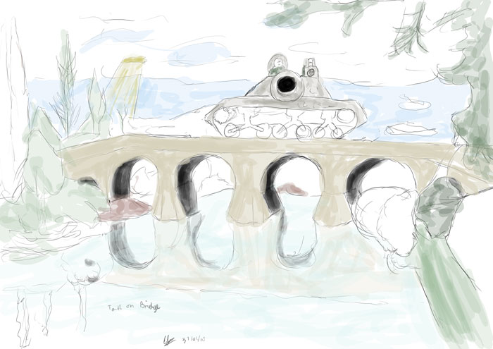A big tank on a smallish bridge. Hope you like it. Started off really wanting to draw something like this but kinda ran out of steam halfway through.